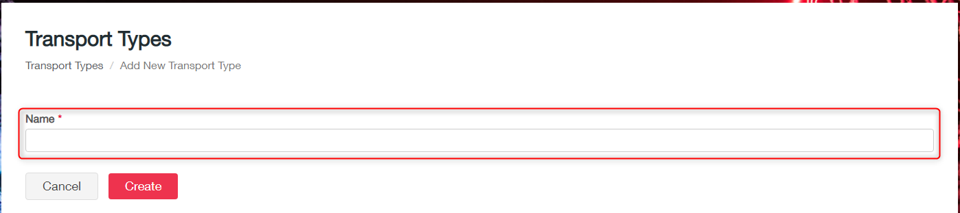 - To edit an existing Transport Type, click the edit button next to the Transport type. Change the name and click ‘Save’