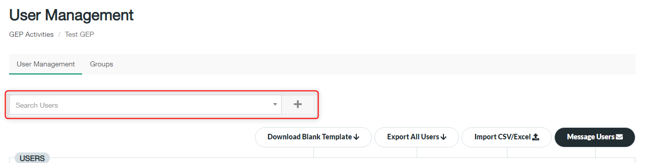 - Select a User from the Search Users box and click the ‘+’ to add them