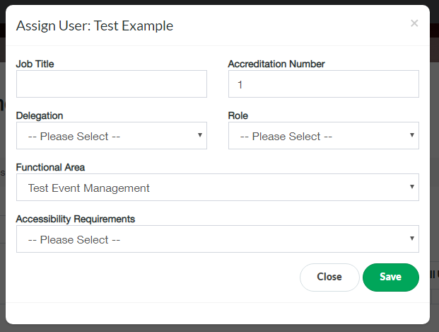 - Insert the Accreditation Number, pick an FA from the drop-down list, select any accessibility requirements and add any additional information