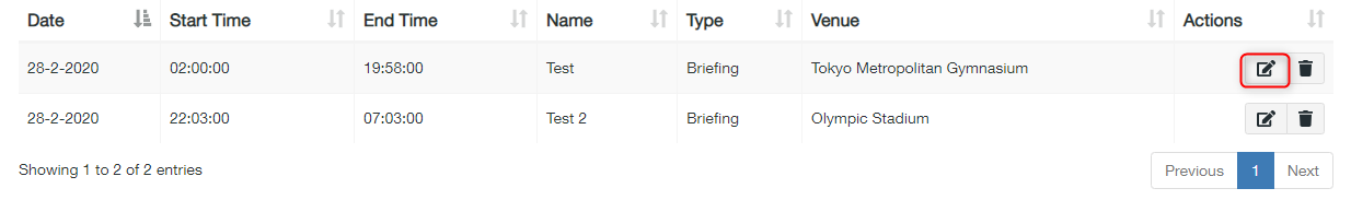 - Click ‘Edit’ next to the session you wish to edit