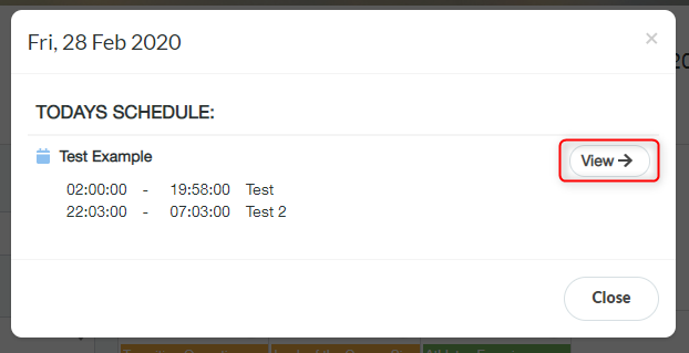 - A list of all activities scheduled for that day is then displayed. Click one of the activities to open the schedule then click ‘View’